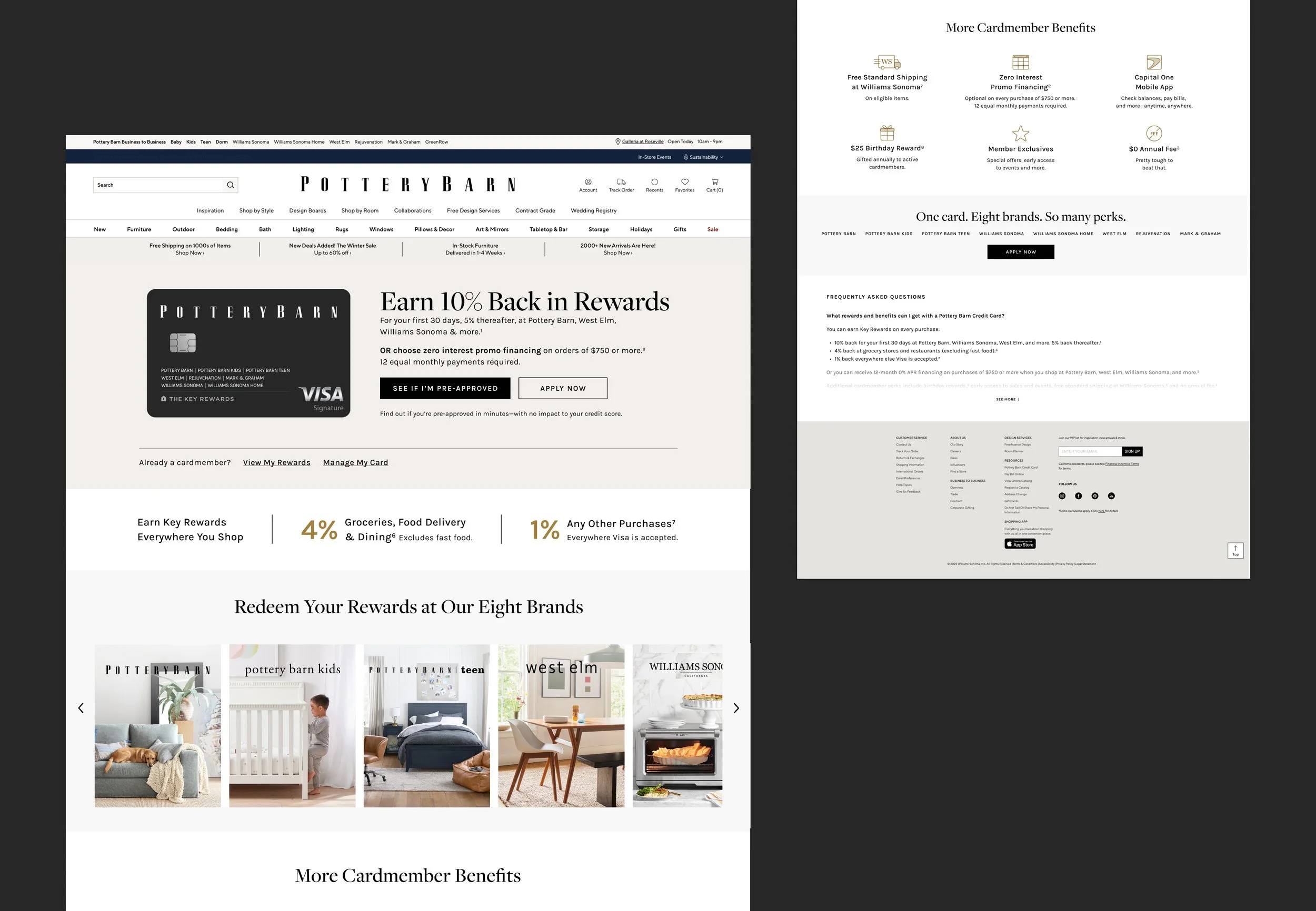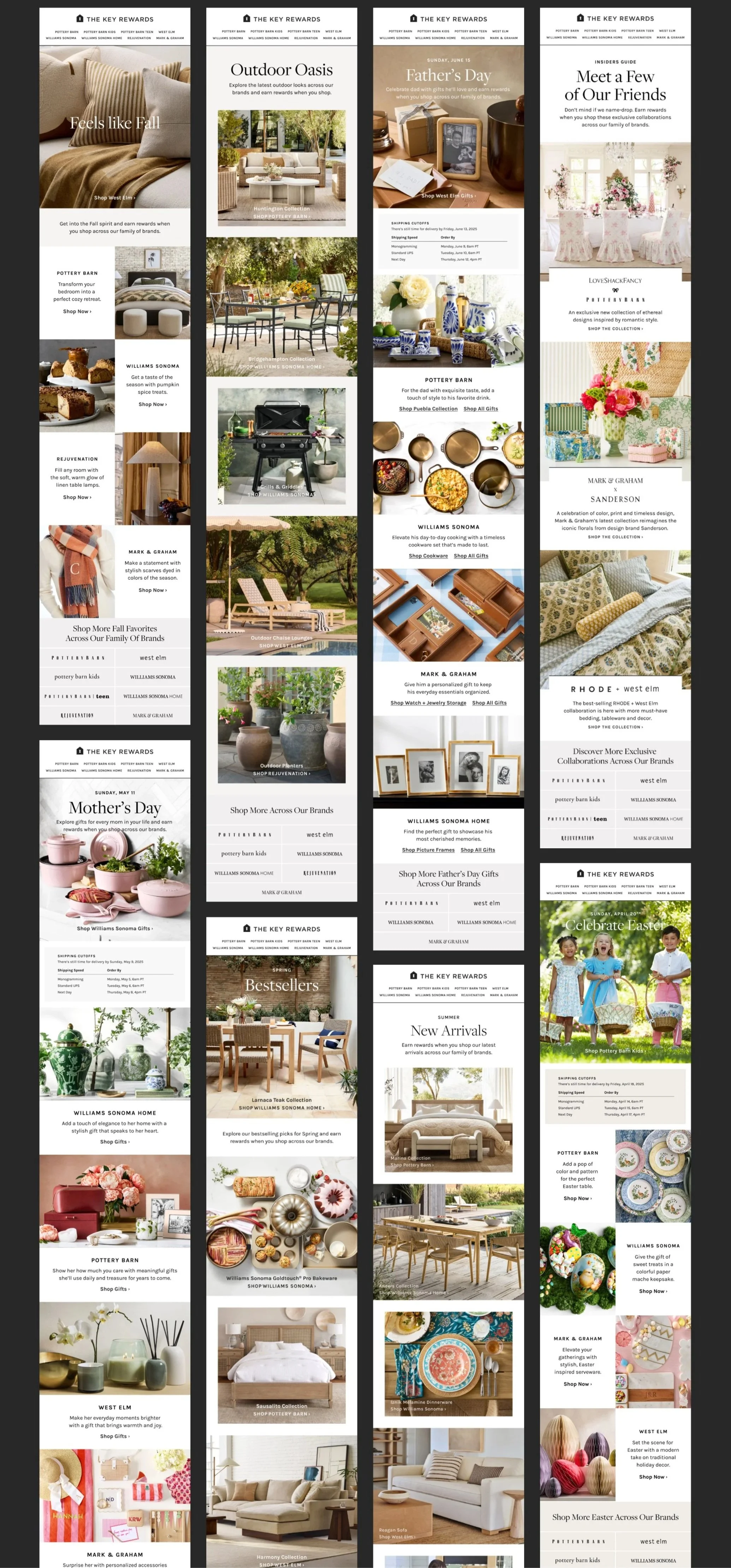 The Key Rewards is the loyalty and credit card program for Williams-Sonoma, Inc.’s portfolio of eight brands: Pottery Barn, Pottery Barn Kids, Pottery Barn Teen, West Elm, Williams Sonoma, Williams Sonoma Home, Rejuvenation, and Mark & Graham. As the graphic designer for the program, I developed cohesive digital and print assets, including brochures, landing pages, digital ads, direct mail, in-store signage, and email campaigns, to support cross-brand sales initiatives and drive credit card acquisition across all eight brands.